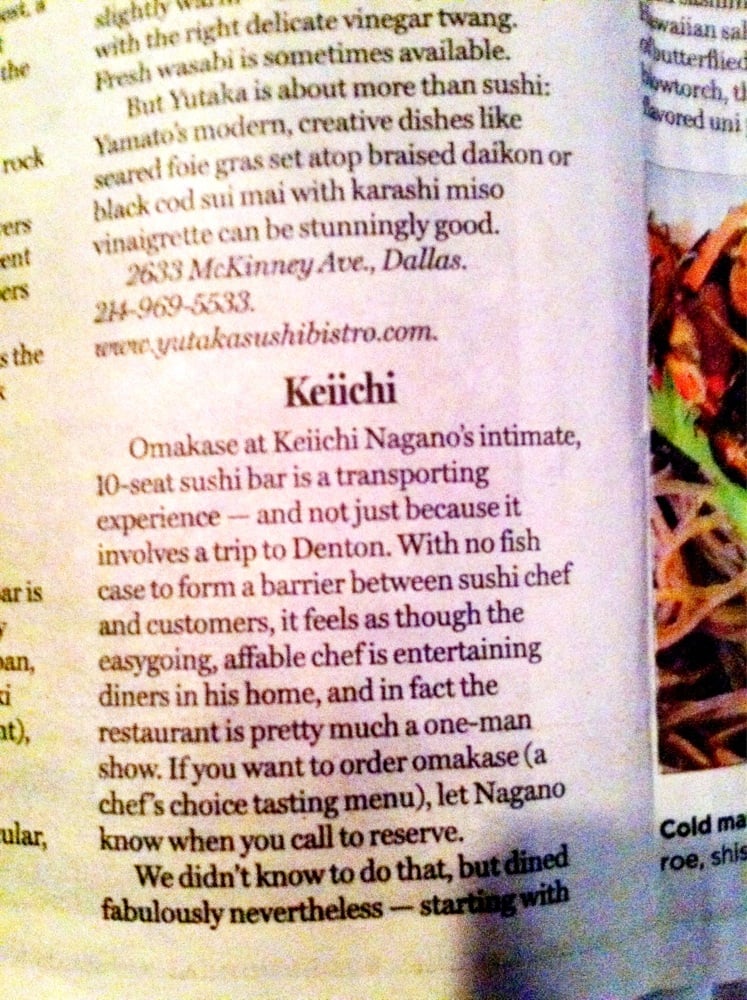 Welcome to Keiichi, a hidden gem nestled at 500 N Elm St in Denton, TX. This intimate Japanese restaurant promises an unforgettable culinary experience, blending traditional flavors with unexpected Italian flair. Limited seating enhances the charm, urging guests to make reservations well in advance.