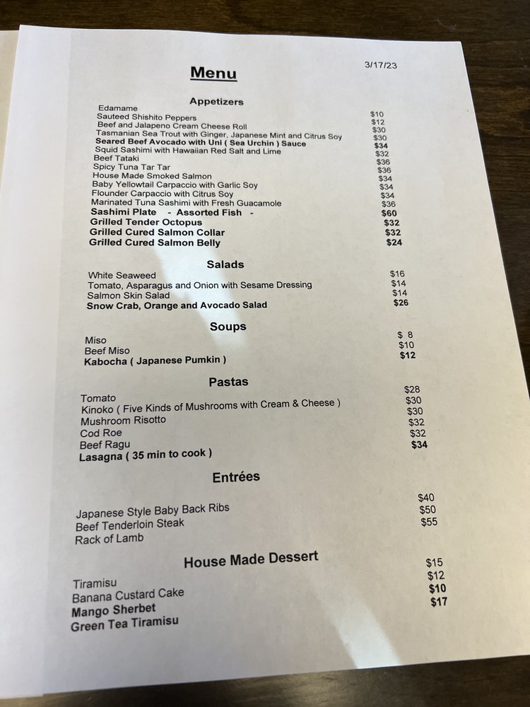 The menu is a carefully crafted selection of fresh, high-quality dishes. Start with tantalizing appetizers like Beef Tataki or Marinated Tuna Sashimi, both showcasing pristine ingredients. The soups offer comforting Miso varieties to warm your palate. As for entrees, the Beef Tenderloin Steak impresses with its melt-in-your-mouth tenderness.